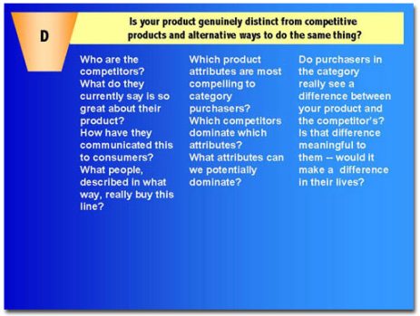 - Do purchasers in the category really see a difference between your product and the competitor’s?